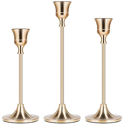 Gold Candle Holders / Amazon Com Sujun Gold Candle Holders Set Of 3 For Taper Candles Decorative Candlestick Holder For Wedding Dinning Party Fits 3 4 Inch Thick Candle Led Candles Metal Candle Stand Kitchen Dining / Gold candles & candle holders :