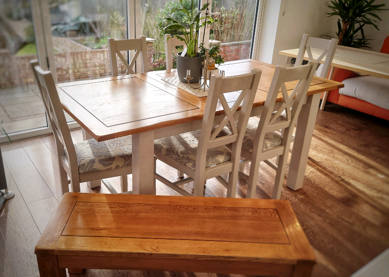 Extendable Dining Room Table With Chairs Bench Oak Furniture Village In Caversham Berkshire Gumtree from i.ebayimg.com Glamorous style for luxurious living. Dining table & chair sets. And we offer free delivery to most parts of the uk, so ordering your new dining. We believe the art of dining deserves a theatre of its own. Our dining furniture options have you covered, no matter the size and layout of your room or how many people you need to seat. Complete your dining room with one of our stylish dining sets. For classic dining rooms, our wooden dining sets are solid options with a rustic touch. Find dining sets that come with five to seven or more pieces of furniture.