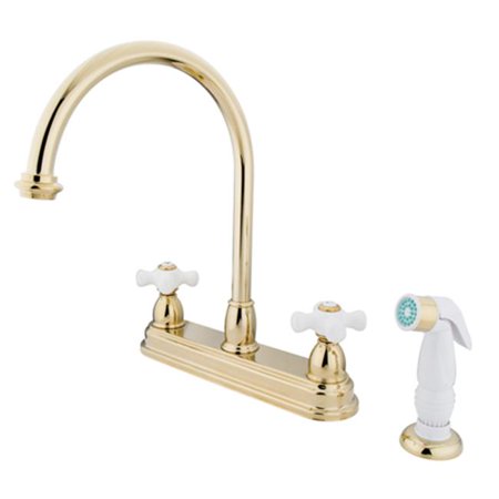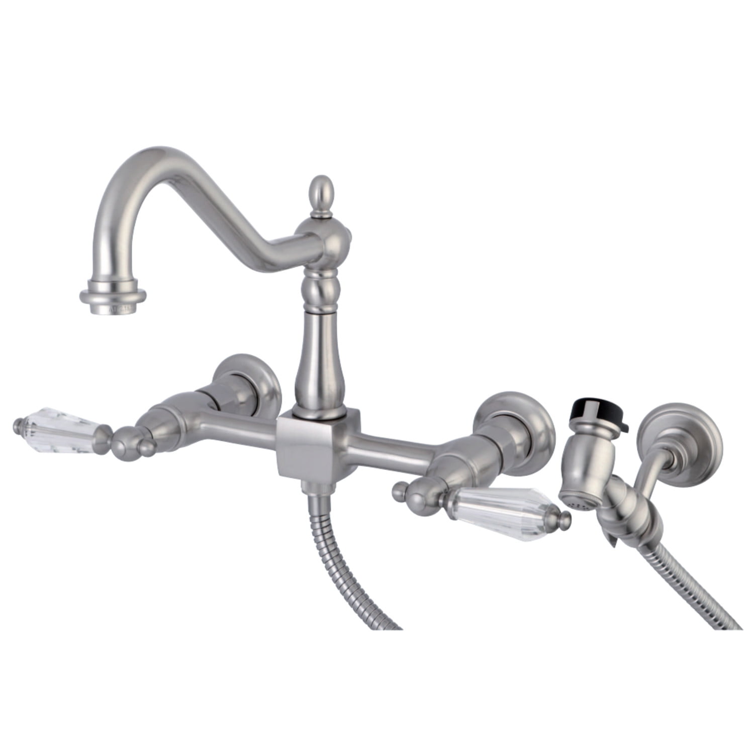 Kingston brass ks127pxbs series 8 inch center spread deck mount bridge kitchen faucet with metal side sprayer.